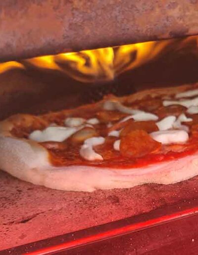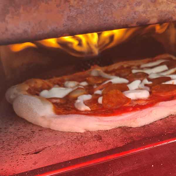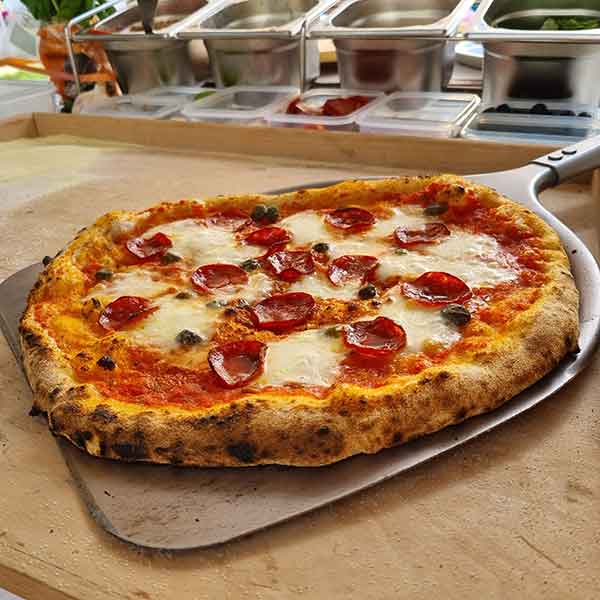 No. The pizzas are made in a special portable oven that reaches a temperature of 450ºC in order to make Neapolitan pizza in just 90 seconds.